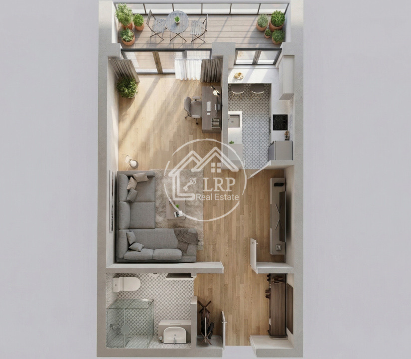 Suprafață: 33 mp utili + balcon spațios de aprox. 4 mp (se întinde pe toată lățimea garsonierei).