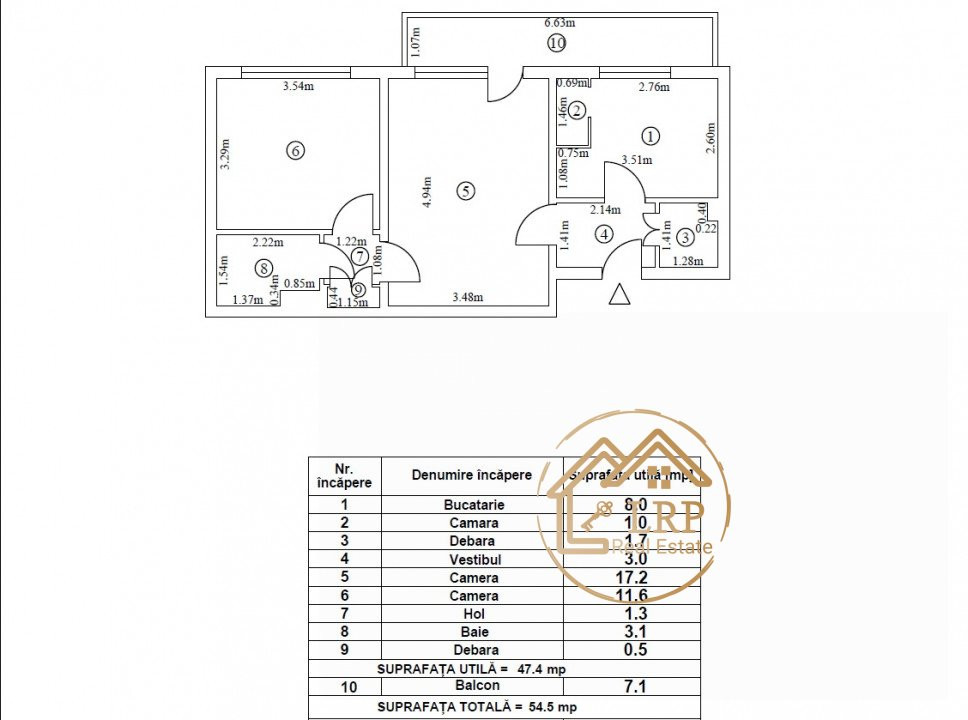 Apartamentul este imbunatatit, dispune de o suprafata utila totala de 54.5mp(balcon 7.1mp) si este orientat pe Est.