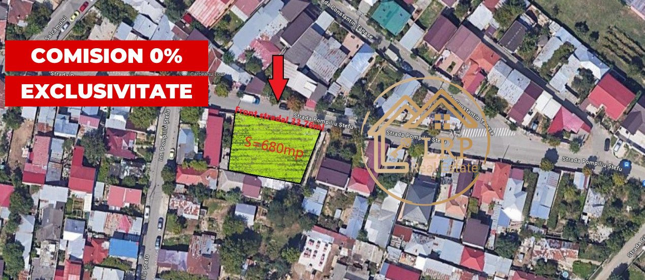 Terenul liber de constructii este in suprafata de 680mp si are deschidere de 33.76ml la strada principala.
